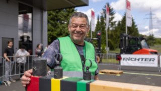 Im Parcours "Setzkasten" ging es vor allem um Fingerspitzengefühl. An der Startposition standen drei nummerierte Schaumstoffformen für die Fahrerinnen und Fahrer parat, die in richtiger Reihenfolge mit dem Zinken aufgenommen und möglichst schnell und passgenau in die dafür vorgesehenen Setzkästen platziert werden mussten. Strafsekunden gab es unter anderem für Formen, die vom Zinken heruntergefallen sind oder nicht korrekt in den Setzkasten eingefahren wurden.
